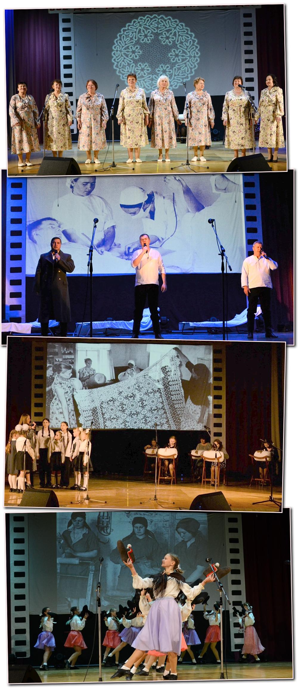 Сюжетная линия концерта повествовала о труженицах города Советска в годы Великой Отечественной войны. Советск не был затронут боями. В нем не звучали сирены воздушной тревоги, не грохотали взрывы. Пока на передовой шли ожесточенные сражения, здесь в тылу, как и по всей стране, кипела напряженная работа, шаг за шагом приближавшая День Победы. В первые месяцы войны критически важной задачей было эвакуировать, восстановить и ускорить промышленное производство в тылу. С первых дней войны женщины потянулись к работе на производстве, заменяя мужчин. Жены рабочих, домашние хозяйки, учащаяся молодежь принялись за изучение производственных профессий. С началом войны возросло не только количество женщин, занятых в производстве; работа на заводе, в цехе, у станка стала для женщины эффективной формой участия в обороне страны. Чувство ответственности за работу тыла, за снабжение фронта необходимыми материалами, за обеспечение военных заказов выросло в огромной степени. Сюжетную линию концерта-экскурсии на протяжении всего мероприятия с успехом вела Екатерина Шургина, лектор-экскурсовод «Советского районного краеведческого музея», рассказывая ребятам (экскурсионной группе) о работе предприятий в годы Великой Отечественной войны. Исторический материал написала и грамотно подготовила Лидия Васильевна Сентябова. Лейтмотивом концерта-экскурсии являлась песня «Городок над Пижмой» в исполнении народного семейного ансамбля «Надежда», а написана песня Надеждой Илинарховной Торощиной, заслуженным работником культуры РФ. Сквозное действие мероприятия предполагало работу человека на производстве. Работники ООО «Сладкая Слобода» и студентки профессии «Кружевница» и Ольга Викторовна Полетаева – мастер производственного обучения многопрофильного техникума г. Советска им. Героя Советского Союза Л.А. Говорова с успехом инсценировали заданную суть. Концерт являлся отчетным мероприятием для народного самодеятельного коллектива ансамбля ветеранов «С песней по жизни», руководитель Марина Николаевна Лобанова, аккомпаниатор – концертмейстер Александр Александрович Лобанов. Участники ансамбля достойно выступили и показали всё мастерство. Стойко, уверенно и активно работали на протяжении всего концерта! Мероприятие не оставило никого равнодушным и вызвало бурю эмоций благодаря артистам, которые как никто знают толк в искусстве и профессионально передали через творчество душевное и эмоциональное состояние. Выражаем огромную благодарность: • Народному песенно-танцевальному ансамблю «Русский стиль», руководитель Марина Николаевна Лобанова, концертмейстер Александр Александрович Лобанов, балетмейстер Анастасия Александровна Бердникова • Образцовому ансамблю бального и эстрадного танца «Овация», руководители Анастасия Александровна Бердникова, Светлана Валерьевна Патрушева • Образцовому ансамблю эстрадного танца «Анютины глазки», руководитель Анна Владимировна Васильева • Ученикам Детской школы искусств им.Завалишиной «Класс выразительного чтения» Ульяне Золоторевой, Ярославе Сушенцовой, Владу Предеину. Концерт-экскурсия «Женская судьба» очень поучителен для каждого жителя нашего города и его гостей. Благодарим преданных зрителей, которые посетили мероприятие.