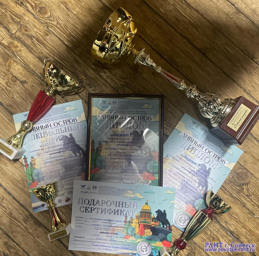 Наши ребята вернулись с XIV Международного конкурса-фестиваль «Дивный остров». с целой россыпью наград, и результаты просто космические: Дважды лауреаты I степени! (И в эстрадном, и в народно-стилизованном танце — это говорит о невероятном профессиональном успехе!). Специальный приз + денежный грант 20000 рублей — жюри оценило талант по достоинству. Попадание в ТОП-5 лучших коллективов всего конкурса и право выступать на гала-концерте! Это огромный успех среди сильнейших! Руководитель ансамбля Анна Владимировна Васильева удостоена диплома за педагогическое мастерство — настоящий знак качества. Мы гордимся нашими звездами! Так держать, «Анютины глазки»!